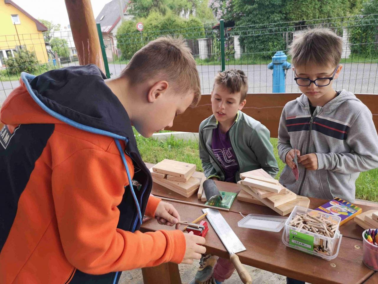 V rámci pracovních činností se žáci seznámili s prací truhláře. Vyrobili si své vlastní truhlíky. Vyzkoušeli si řezání, broušení, zatloukání kolíčků, šroubování apod. Začalo se písničkou, pokračovalo prací a končilo krásnými vlastnoručně ozdobenými truhlíky.